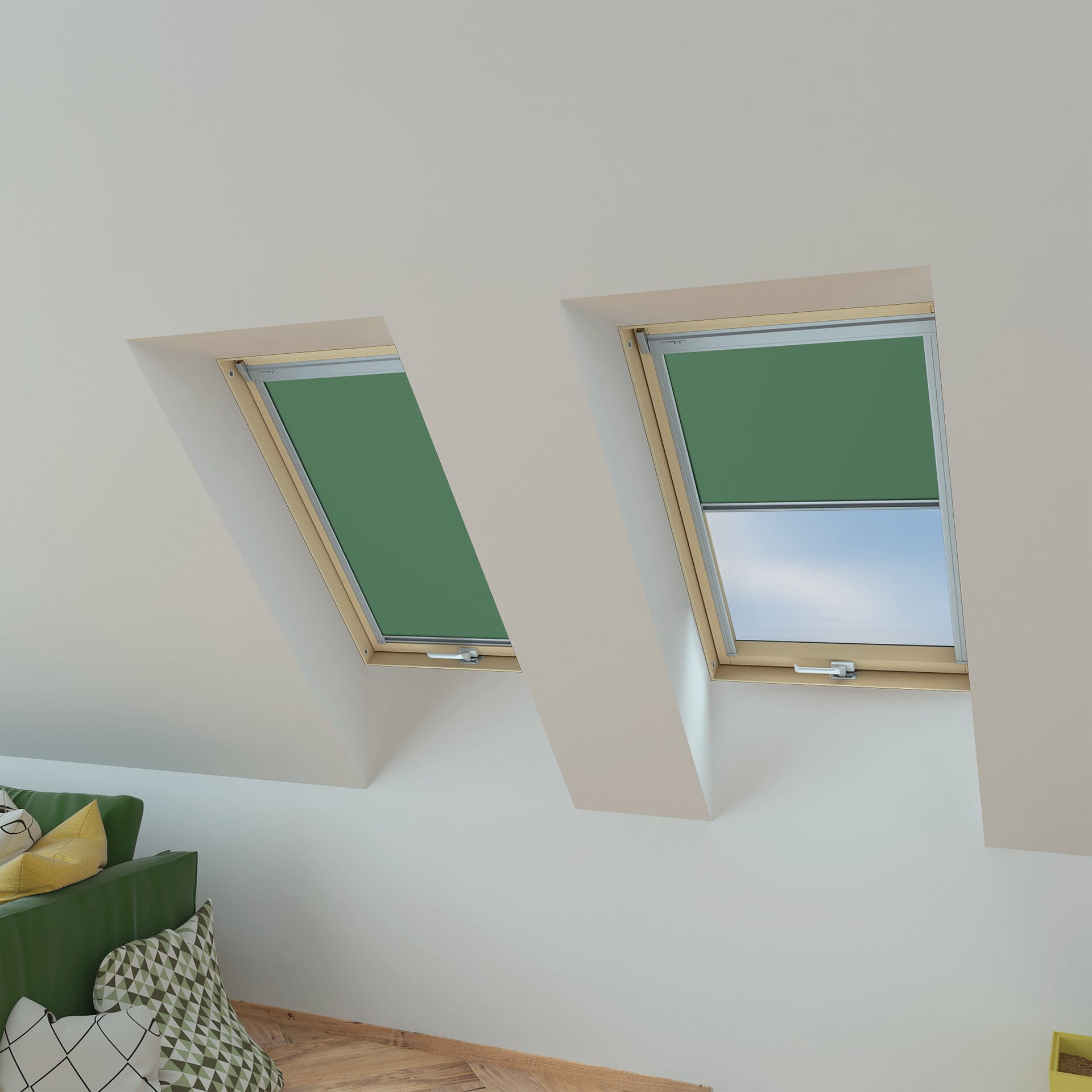 - zapewnia częściowe zaciemnienie, zaciągnięta na oknie dachowym roleta rozprasza ostre światło słoneczne,