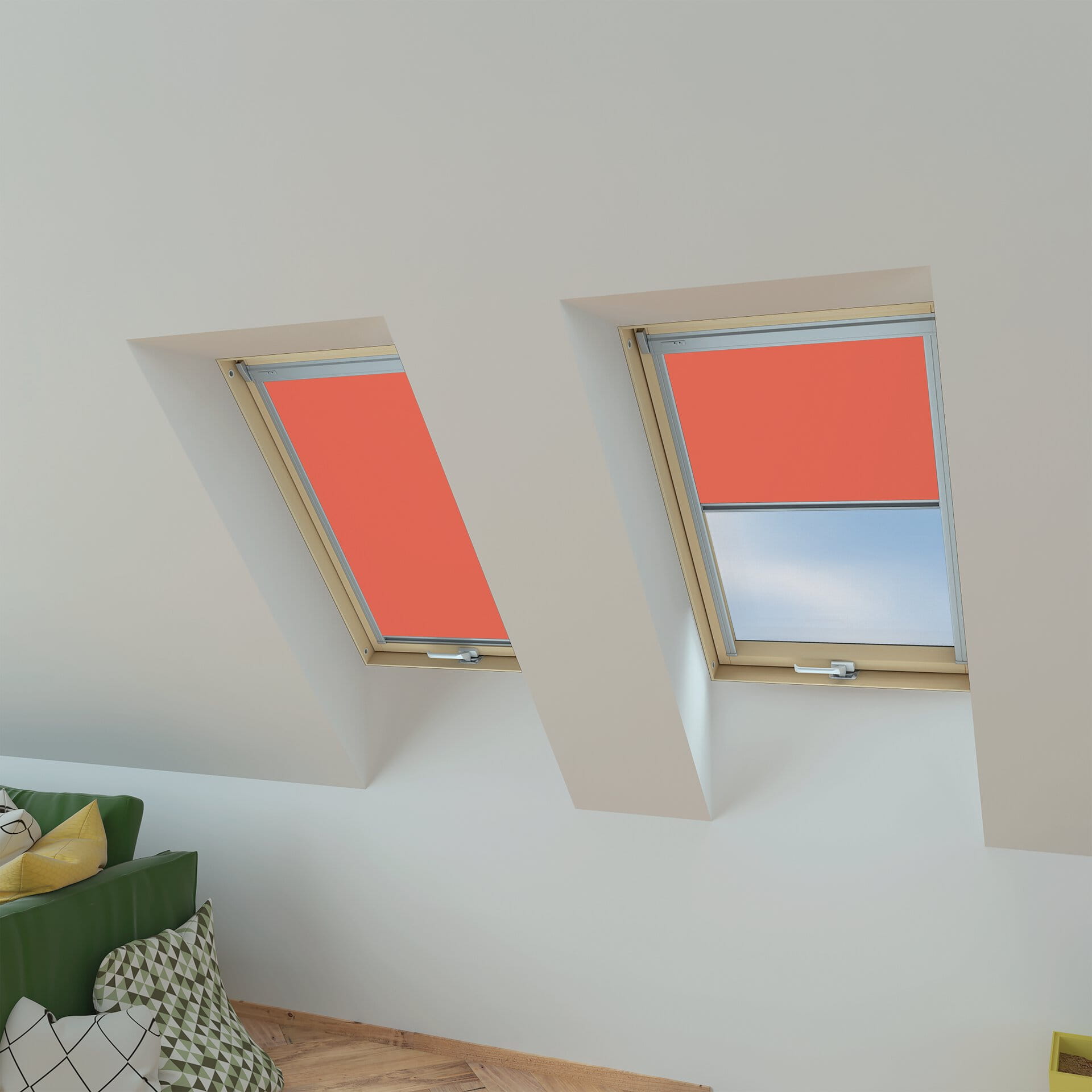 - zapewnia częściowe zaciemnienie, zaciągnięta na oknie dachowym roleta rozprasza ostre światło słoneczne,