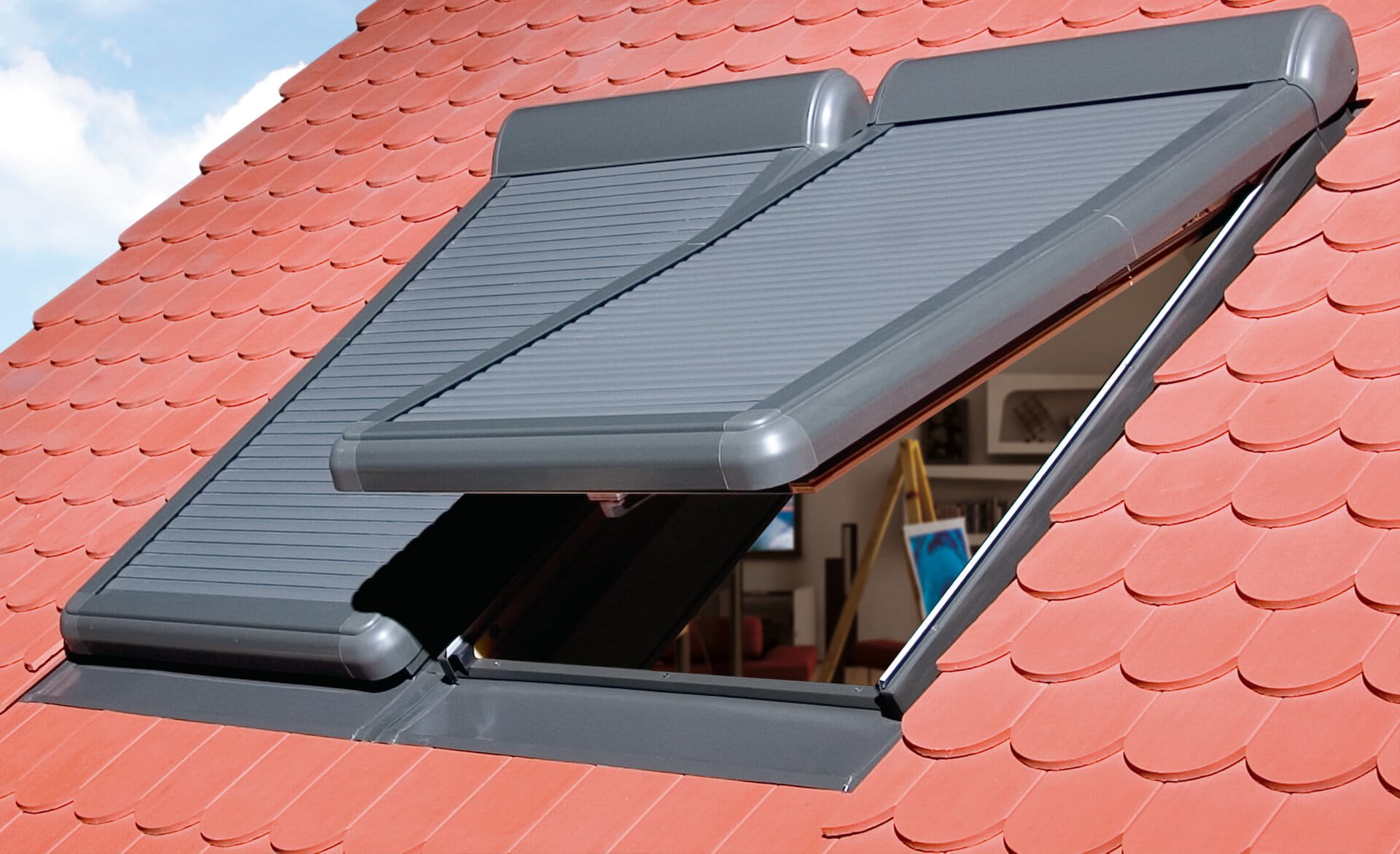 Rolety na okna dachowe Fakro ARZ Z-Wave sterowane za pomocą przełącznika lub pilotem.