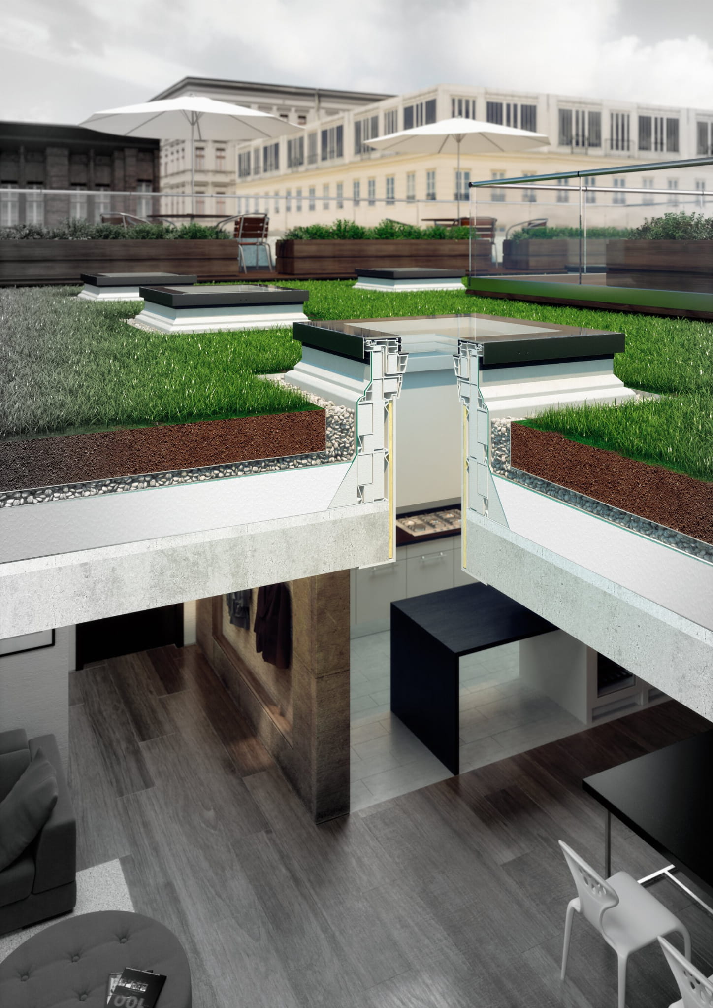 Rama XRD-W umożliwia podniesienie okna ponad stropodach o 15 cm i skraca do minimum czas potrzebny do montażu okna na np. w dachach zielonych czy żwirowych.