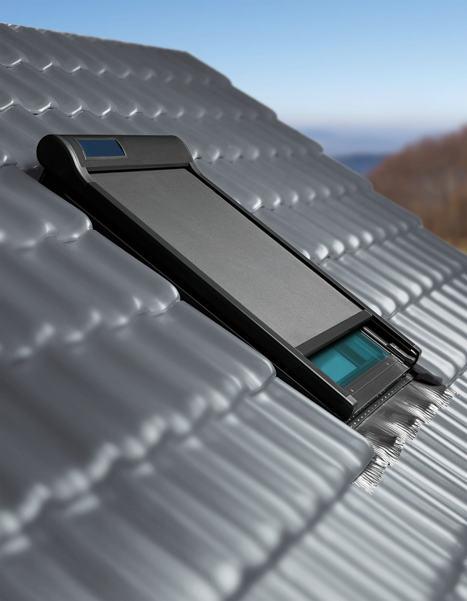 a w jednej chwili możemy zasłonić markizą okno dachowe. Możemy ją również