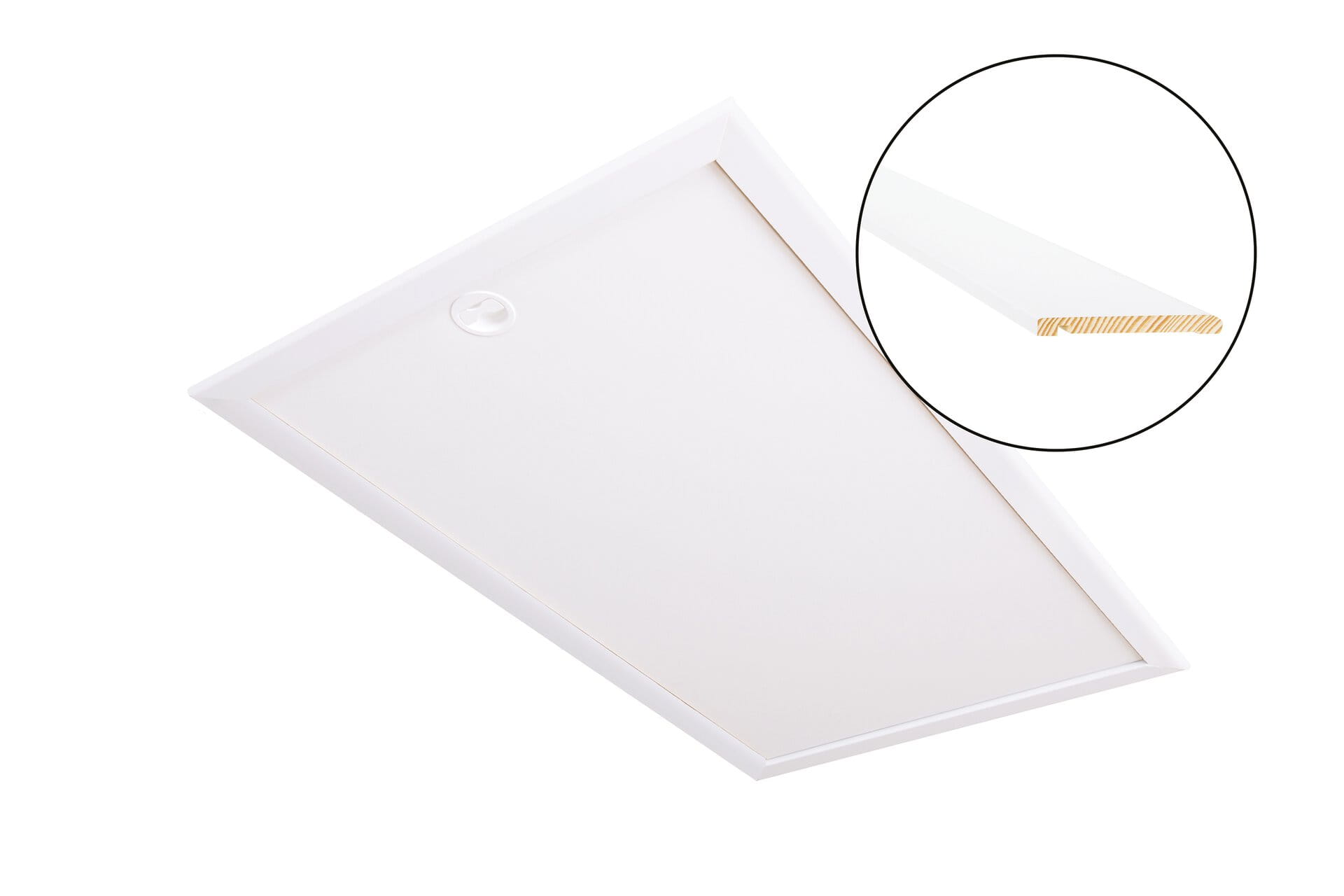 LXA-W to drewniane listwy wykończeniowe wykonane z wysokiej jakości drewna sosnowego w kolorze białym, zaprojektowane specjalnie dla schodów strychowych GREENSTEP. Dzięki szerszej konstrukcji, listwy te stanowią idealne rozwiązanie dla klientów, którzy wymieniają schody i potrzebują estetycznego zamaskowania większych szczelin lub ubytków w stropie, powstałych po demontażu poprzednich schodów.