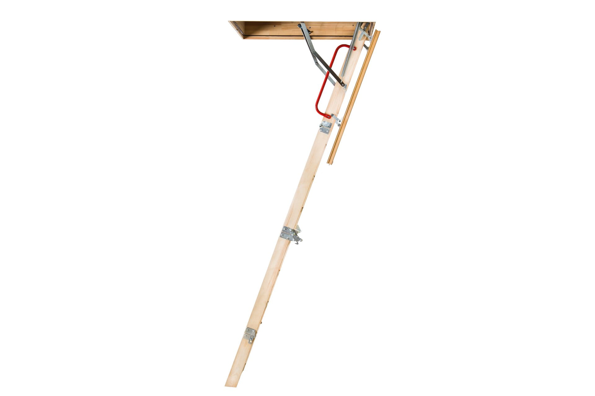 LWL Extra to drewniane schody strychowe nowej konstrukcji o podwyższonych parametrach termoizolacyjnych. Dla zwiększenia bezpieczeństwa i komfortu użytkowania schody zostały wyposażone w dodatkową poręcz, zamontowaną do środkowego segmentu oraz mechanizm odciążający, który wspomaga składanie i rozkładanie drabiny.